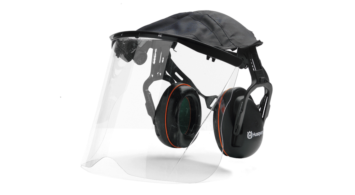 Skyddar vid gräsröjning m m. Nu med skydd mellan visir och hjässbygel som förhindrar gräs, spån och regn att komma in ovanifrån. Komplett enligt bild. Plexivisiret kan även köpas separat och passar Husqvarnas Hjälm komplett. Kan även förses med visirskärm. När du använder visir skall du alltid använda godkända skyddsglasögon.