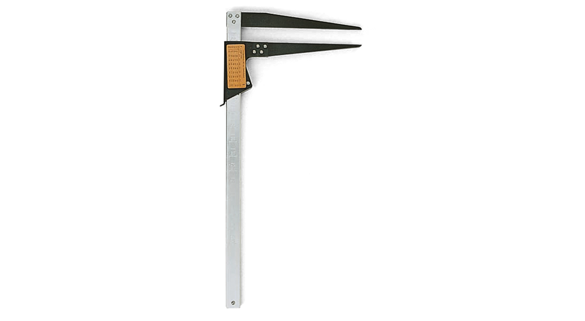 Klave med cylindervolymtabell. Klaven har centimetergradering på 2 sidor.